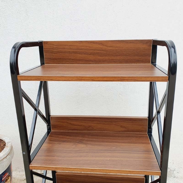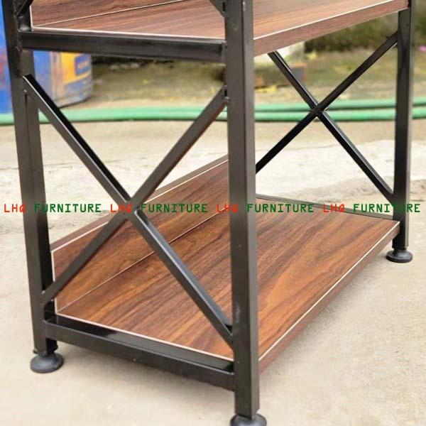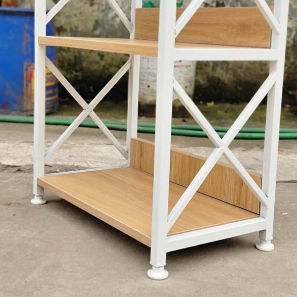Kệ được thiết kế với khung sắt sơn tĩnh điện chất lượng cao, giúp chống gỉ sét và tăng độ bền cho sản phẩm. Khung sắt vững chắc này đảm bảo kệ có thể chịu được trọng lượng lớn mà không lo biến dạng hay lung lay, đồng thời mang đến vẻ ngoài hiện đại và sạch sẽ.