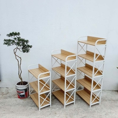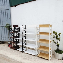 - Chất liệu: Khung sắt sơn tĩnh điện kết hợp với kệ gỗ (gỗ tự nhiên hoặc gỗ công nghiệp).